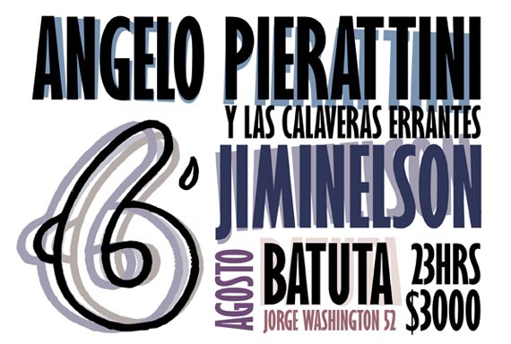 Una nueva jornada de rock con epicentro en Ñuñoa se llevará a cabo este 6 de agosto en La Batuta. Ángelo Pierattini y su banda Las Calaveras Errantes, compartirá el escenario con Jiminelson, ambos exponentes del nuevo rock nacional, con canciones de autor y sonido ligados al blues y folk.