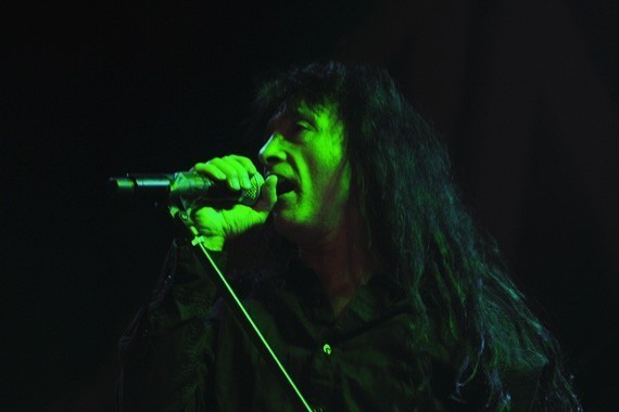 ¿Quedaban fuerzas aún para disfrutar de una de las cuatro grandes bandas del thrash de los ’80? ¡Por supuesto! Pasadas las 22 horas, el sonido de sirenas envuelve el local de San Diego, para dar paso a los acordes de “Among the living” y la fiesta es total: mosh por doquier en cancha, mientas Frank Bello (bajo) y el hiperquinétco Scott Ian (guitarra) derrochaban energía, Joey Belladona recorría de extremo a extremo el escenario, arengado al público. Sin pausas, “Caught in a mosh”, toda una declaración de principios del estilo, desata aún mas caos en la concurrencia.