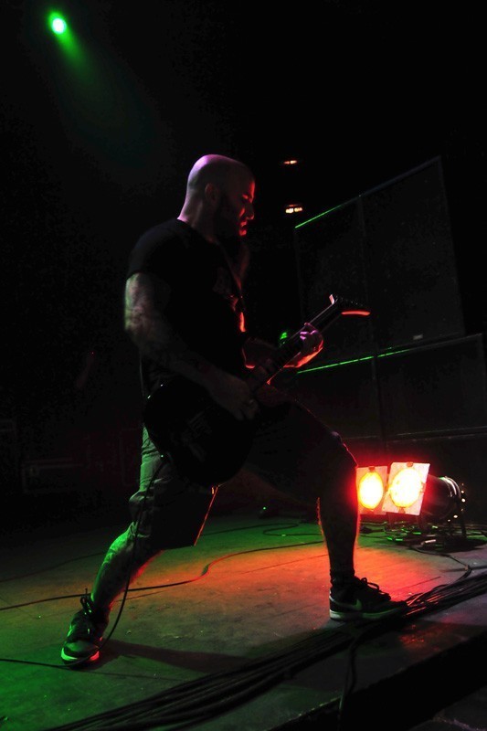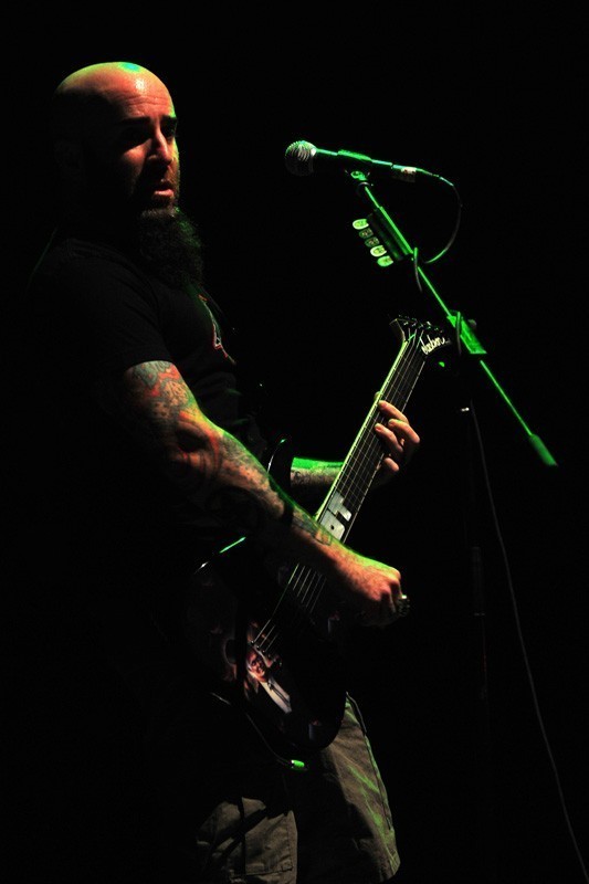 ¿Quedaban fuerzas aún para disfrutar de una de las cuatro grandes bandas del thrash de los ’80? ¡Por supuesto! Pasadas las 22 horas, el sonido de sirenas envuelve el local de San Diego, para dar paso a los acordes de “Among the living” y la fiesta es total: mosh por doquier en cancha, mientas Frank Bello (bajo) y el hiperquinétco Scott Ian (guitarra) derrochaban energía, Joey Belladona recorría de extremo a extremo el escenario, arengado al público. Sin pausas, “Caught in a mosh”, toda una declaración de principios del estilo, desata aún mas caos en la concurrencia.