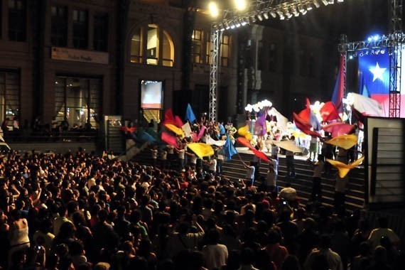 Una gran bandera chilena recibía a todo el que ingresaba por el Parque Los Reyes hacia la Estación Mapocho. La intención estaba clara: todo Chile debía solidarizarse con Haití. El llamado de los distintos animadores era reiterativo: «En Chile sabemos de terremotos»,»acá hemos vivido experiencias similares», refiriéndose al terremoto del 60’ y otros previos.