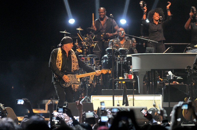 «En 1988 estuvimos tocando para Amnistía Internacional en Mendoza, Argentina. Pero Chile estaba en nuestros corazones. Conocimos a muchas mujeres de desaparecidos, quienes vinieron con fotografías de sus seres queridos. Fue un momento que se quedó conmigo para siempre», recordó en un casi perfecto español, para luego agregar «es un honor estar aquí y lo digo con humildad» y dar inicio al sentido homenaje con su guitarra en mano, acompañado por Nils Lofgren en una segunda guitarra y Barry Danielian en trompeta.