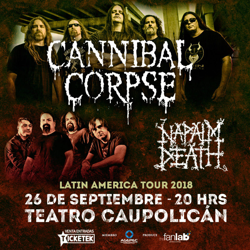 Tanto Cannibal Corpse como Napalm Death están más vigentes que nunca, con material reciente que presentarán a los fanáticos que vayan a disfrutar de este gran show en el Teatro Caupolicán.