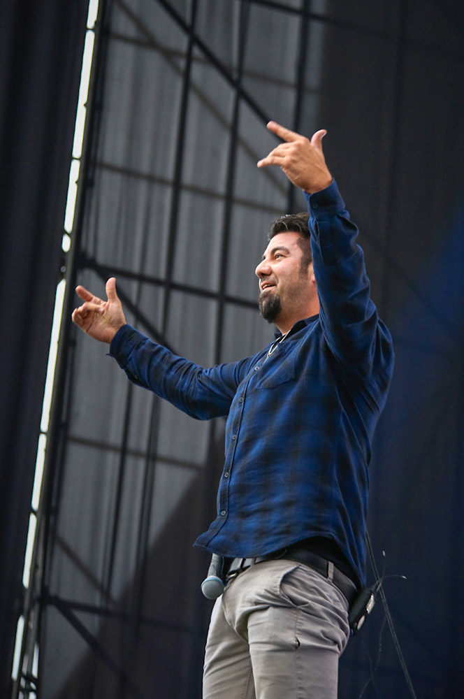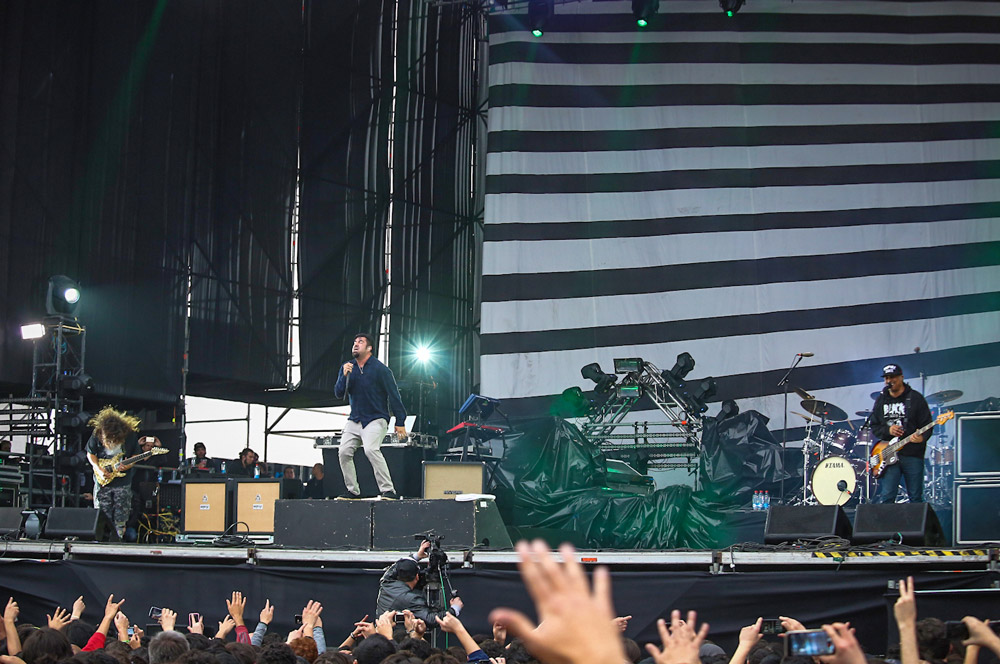 La banda estadounidense Deftones, con Chino Moreno al frente, apareció en uno de los escenarios principales del Santiago Gets Louder cuando ya el sol caía por el horizonte la tarde del domingo 27 de septiembre. Con un cargamento de éxitos, comenzando con «Diamond Eyes», los de Sacramento se despacharon un enérgico show que incluyó éxitos como «Be Quiet and Drive (Far Away)», «Knife Prty», «Tempest» y «Engine No. 9».