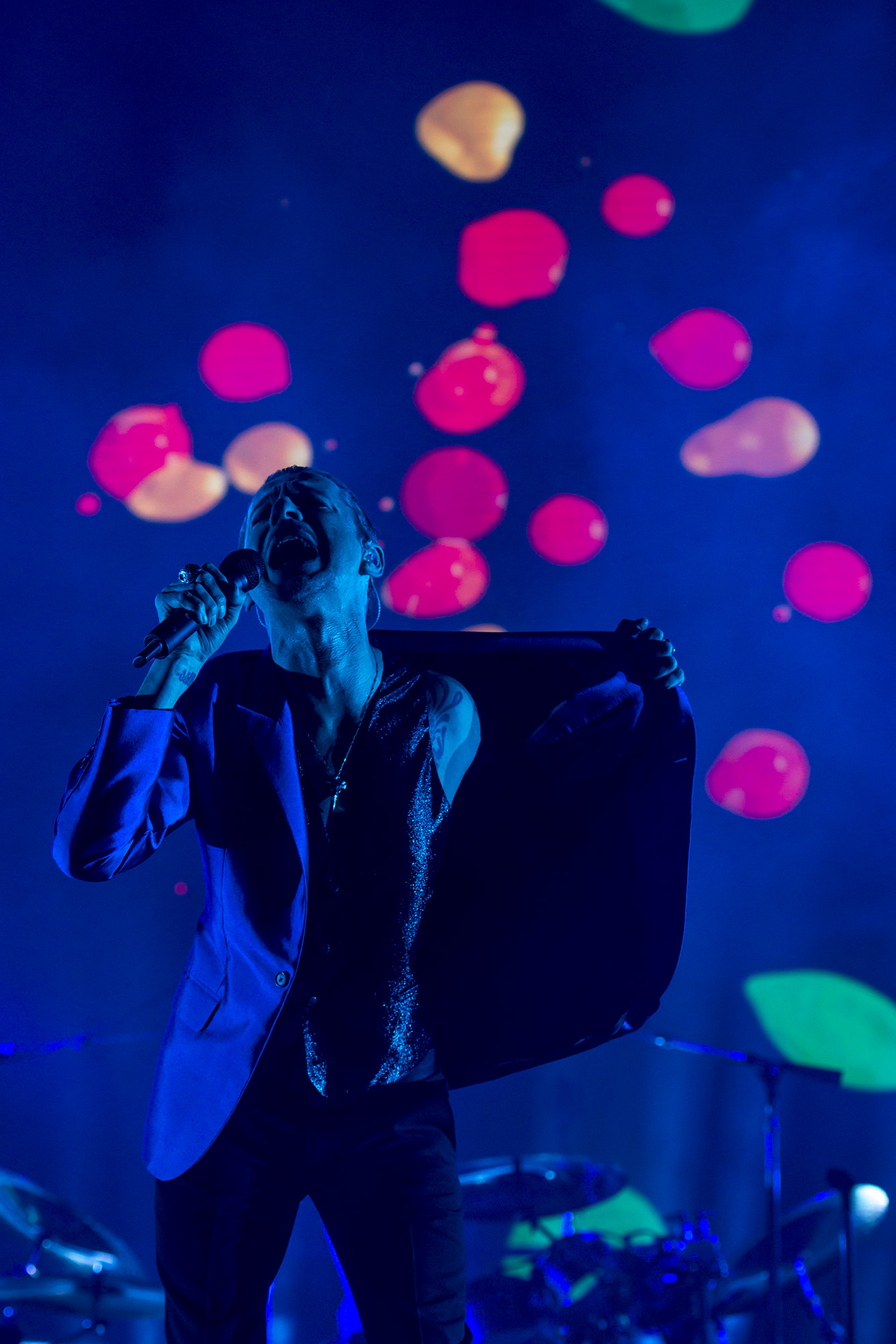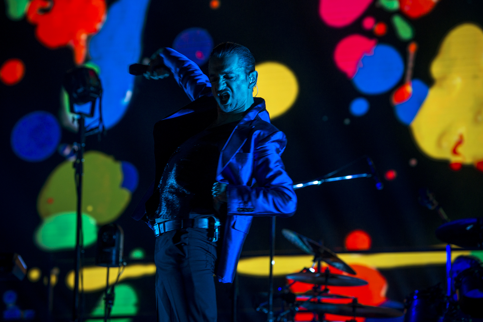A todo esto se suma el trabajo audiovisual realizado por el artista holandés Anton Corbijn, colaborador histórico del grupo, que funciona como un traje perfecto, hecho a medida. En canciones como «Useless«, «In Your Room» y «Walking in My Shoes» las imágenes que se proyectan en la pantalla gigante que viste el fondo del escenario se transforman en el complemento perfecto para la música, invitando a la audiencia a sumergirse en distintos mundos.