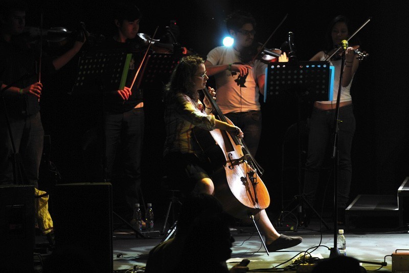 A partir de la segunda canción, «I’m a Cuckoo», la atención se dirigió casi exclusivamente a Stuart Murdoch (voz, guitarras, teclado), un frontman alegre que va ganándose al público de a poco, lento pero seguro. Cuatro violinistas chilenos acompañaron a los músicos de Glasgow durante su presentación.