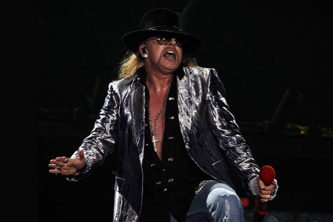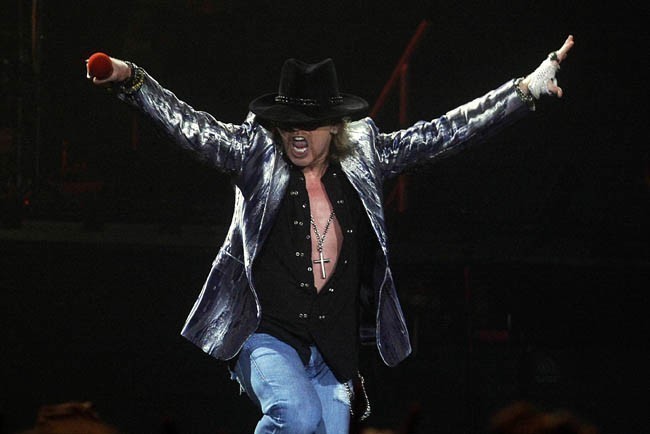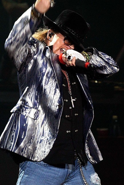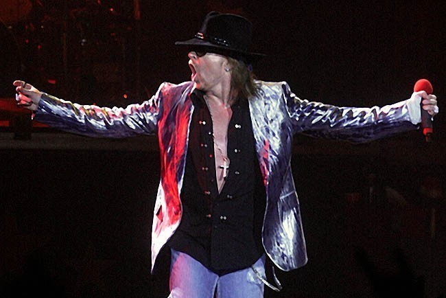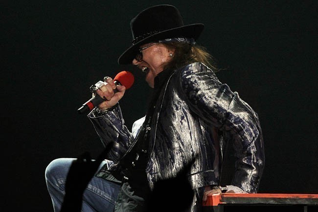 Finalmente, a las 12.20 horas se apagan las luces, en un Movistar Arena a su máxima capacidad, para sonar los acordes de “Chinese democracy”, tema que abre su disco homónimo de 2008, y uno de los más retrasados en la historia del rock. Delirio, mucha pirotecnia, luces y explosiones. La banda sonando como un cañón: tres guitarras vomitando riffs, recordando en cierta medida al actual Iron Maiden. Desgraciadamente, la voz de Axl no ha permanecido intacta con el paso de los años: los altos le costaban, la voz se forzaba de vez en cuando, pero pese a ello lograba mantener la magia de antaño. “Welcome to the jungle” sigue sin pausas, el primer gran clásico de la noche, para seguir con “It’s so Easy” y «Mr. Brownstone”, para dar un respiro a los asistentes, quienes ya se encontraban eufóricos a más no poder.