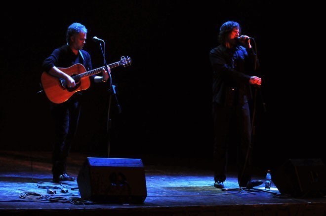 Si en la visita en julio del año pasado de The Gutter Twins, dúo formado por Mark Lanegan y Greg Dulli (The Afghan Whings), en el Teatro Oriente, requirió sólo de tres sillas en el escenario, el concierto acústico de la voz de los noventeros Screaming Trees solo necesitó de micrófonos y a Dave Rosser (músico que acompañó a Lanegan en su visita anterior) en la guitarra. La austeridad de la presentación de Lanegan en el Cine Arte Normandie el pasado domingo se fue llenando con las canciones de su larga carrera como solista y sus proyectos con otros músicos.