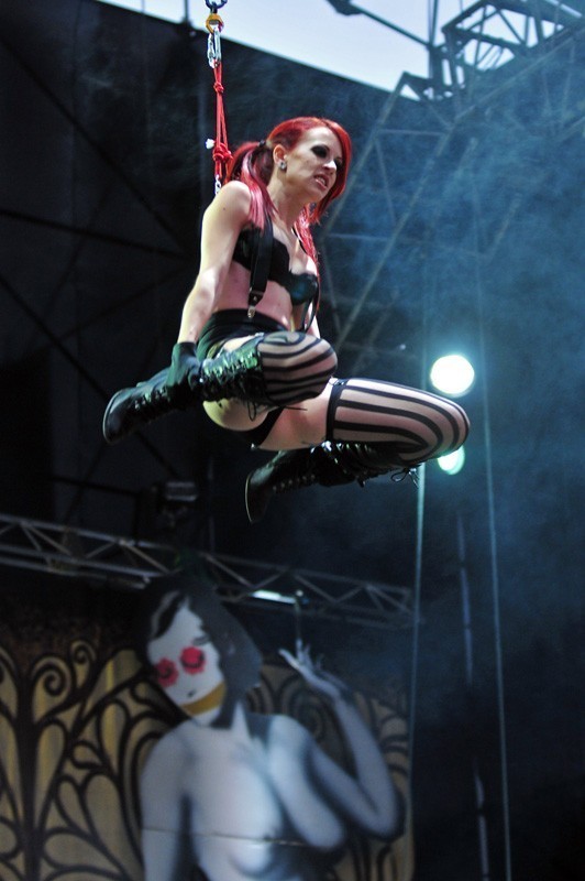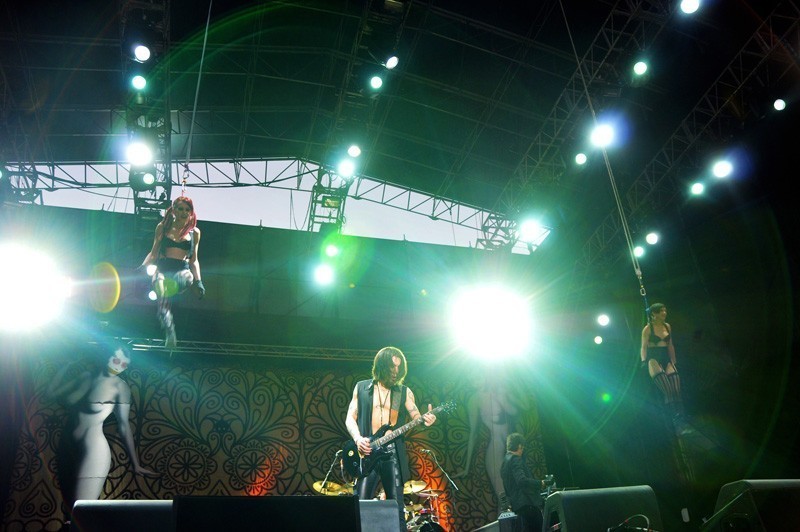 Pero la realidad no sólo supera a la ficción, sino que puede superar también imaginaciones y expectativas. Y así ocurrió en el atardecer del domingo 3 de abril, cuando Jane’s Addiction salió al escenario con dos mujeres suspendidas en el aire, que se balancearon al ritmo de «Whores», mientras el público decidía si mirar, cantar, saltar o gritar.