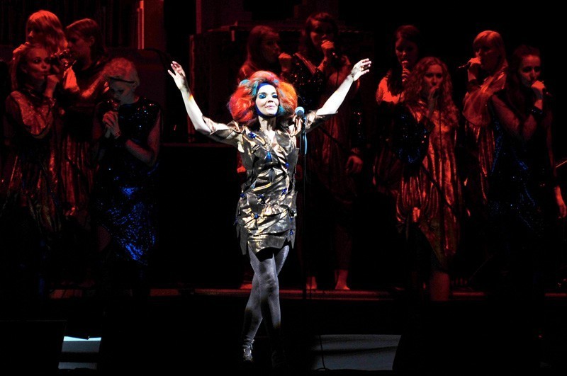 Entre títulos como «Crystalline», «Hollow», «Virus» y «Mutual Core», todas de su último y conceptual álbum Biophilia (2011), la compositora sorprendió con una selección de canciones de diferentes épocas de su carrera, como «Hidden Place», «Unravel», «Joga», «Mouth’s Cradle», «Pagan Poetry» y una transformación completa junto a su percusionista a cargo del Hang Drum en «One Day», una de las canciones de su recordado Debut (1993).