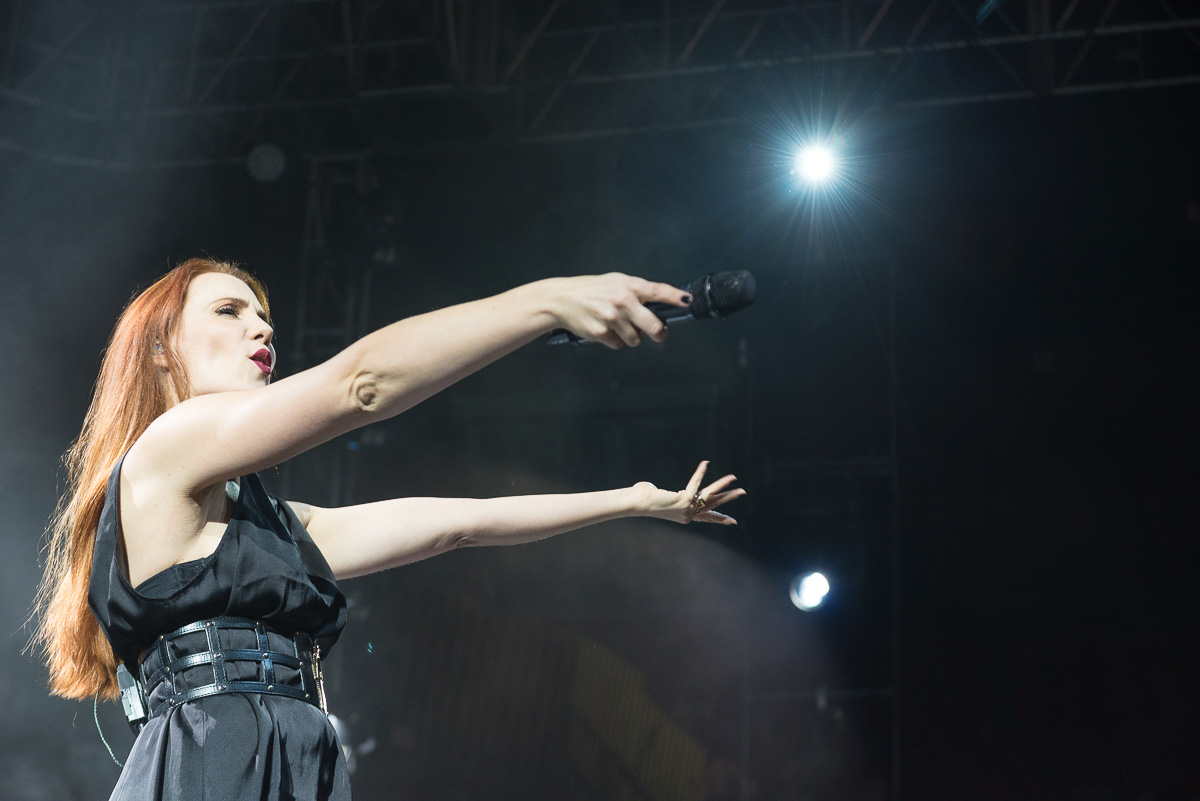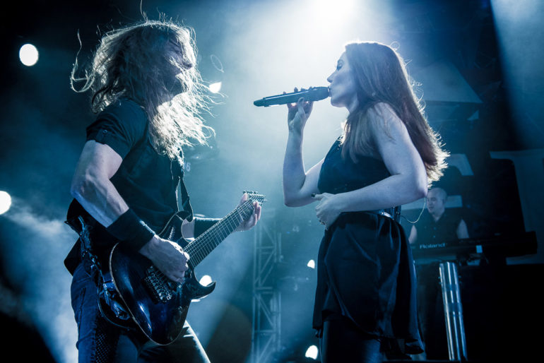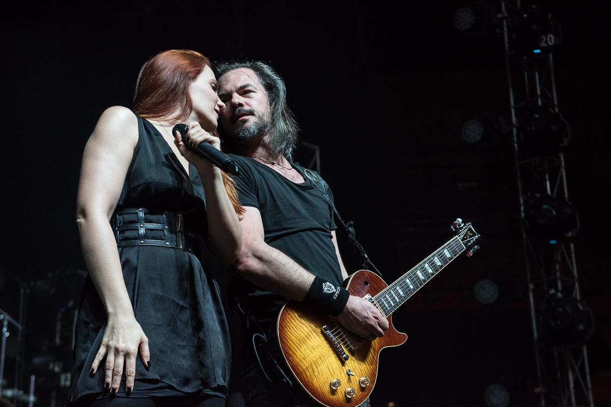 Las sinfonías y coros rimbombantes continuaron con cortes como “Dancing in a Hurricane” (con sonidos de clara influencia del medio oriente) y “Victims of Contingency” para llegar al punto alto de la jornada con “Cry for the Moon” de su primer álbum The Phantom Agony (2003), logrando una simbiosis mayor con los fanáticos, quienes corearon a todo pulmón las líneas de “forever and ever” – la que terminó con una gran performance de Ariën van Weesenbeek en batería- para acto seguido invitar a Anneke, acompañando así a Simone en “Storm the Sorrow”: momento mágico y emotivo, en el que ambas terminaron abrazadas al final, entre grandes aplausos.
