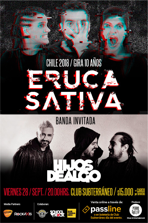 La banda argentina de rock alternativo Eruca Sativa visitará Chile por segunda vez este próximo 28 de septiembre, para realizar un único show en el Club Subterráneo.