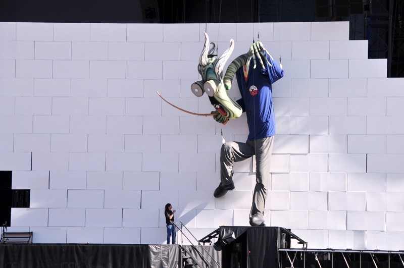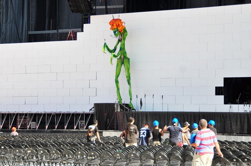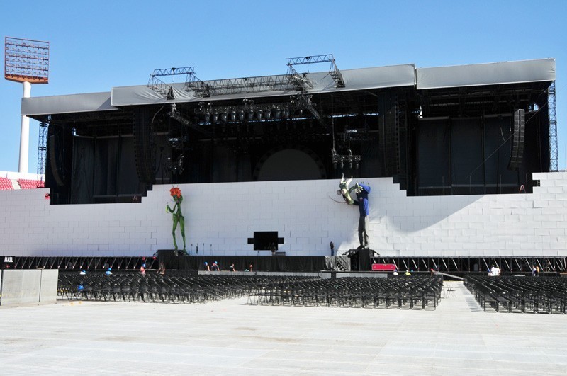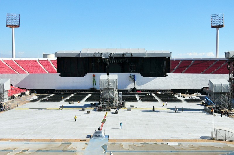 «Es la primera vez que tocamos afuera, en un ambiente de estadio. Aprendimos mucho», aseguró el tour manager del espectáculo, Chris Kansy, en pleno trabajo en el recinto ñuñoino, enfatizando que adaptar la construcción de la enorme muralla fue «en muchos aspectos como empezar nuevamente, un desafío»