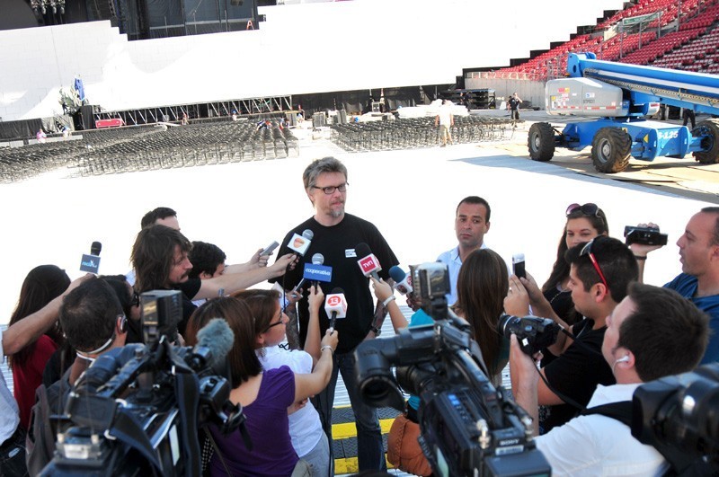 «El vino la otra noche cuando empezamos a construir y se sorprendió, está muy emocionado y feliz. De hecho vino la segunda noche y vio todas las proyecciones y se paseó por todo el estadio para ver como funcionaban y estaba feliz», agregó el responsable del funcionamiento de todos los aspectos del tour, que en Chile tiene a más de 400 personas trabajando, 160 de ellas chilenas.
