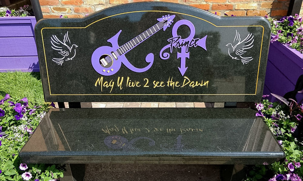 Pero no sólo eso, ya que tras la muerte del músico los fanáticos de todo el mundo se unieron para financiar la construcción de una banca pública con motivos icónicos de su carrera, rodeado de flores púrpuras.