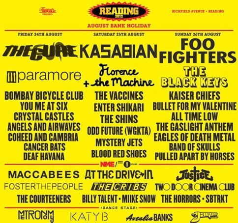 Los próximos 24, 25 y 26 de de agosto se llevarán a cabo los festivales Leeds y Reading en Inglaterra, eventos que se realizan durante los mismos días y comparten un cartel cuyos headliners serán los británicos The Cure y Kasabian y los norteamericanos Foo Fighters.