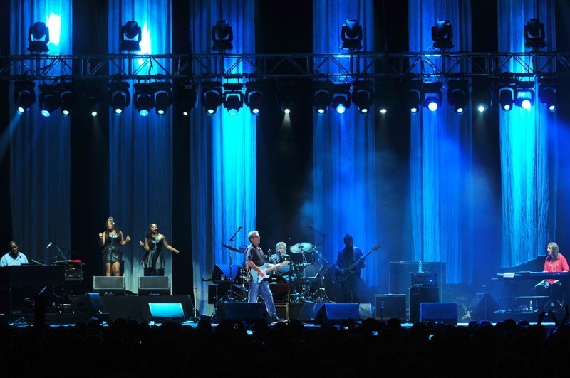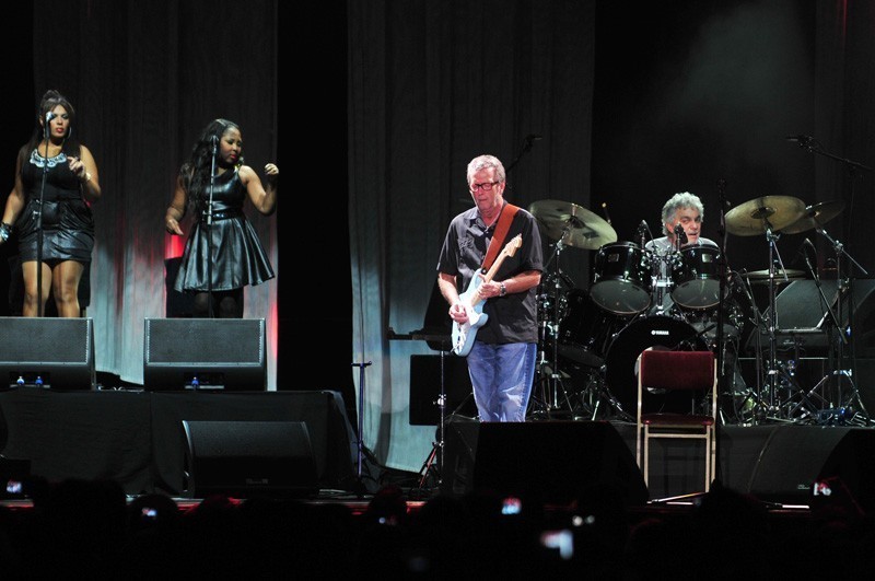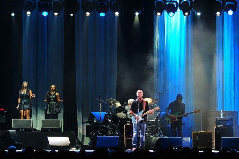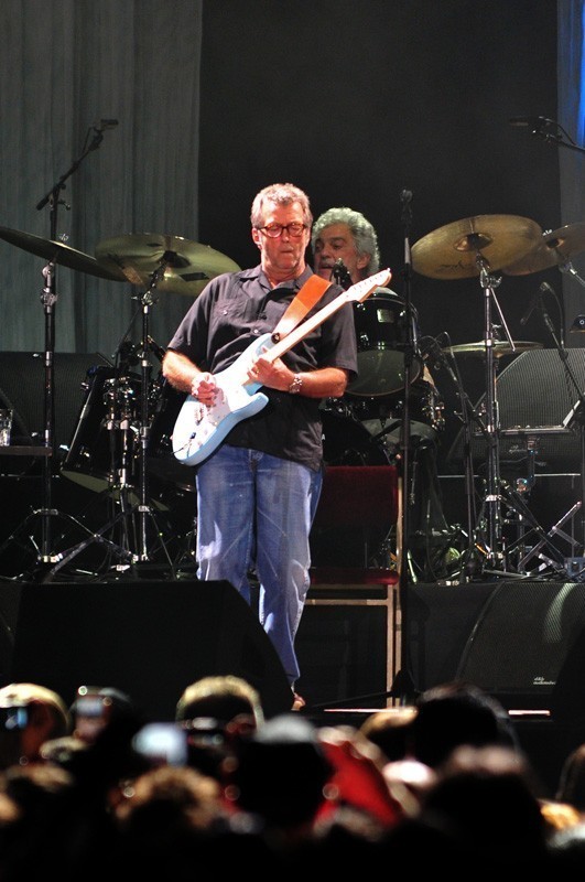 El músico inglés que suma más de 40 años de trayectoria se presentó por tercera vez en Chile la noche del domingo 16 de octubre. El Movistar Arena fue el recinto que recibió en esta oportunidad a Eric Clapton y su banda, integrada por Steve Gadd (batería), Willie Weeks (bajo), Chris Stainton (teclados), Tim Carmon (teclados) y las coristas Michelle John y Sharon White.