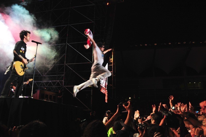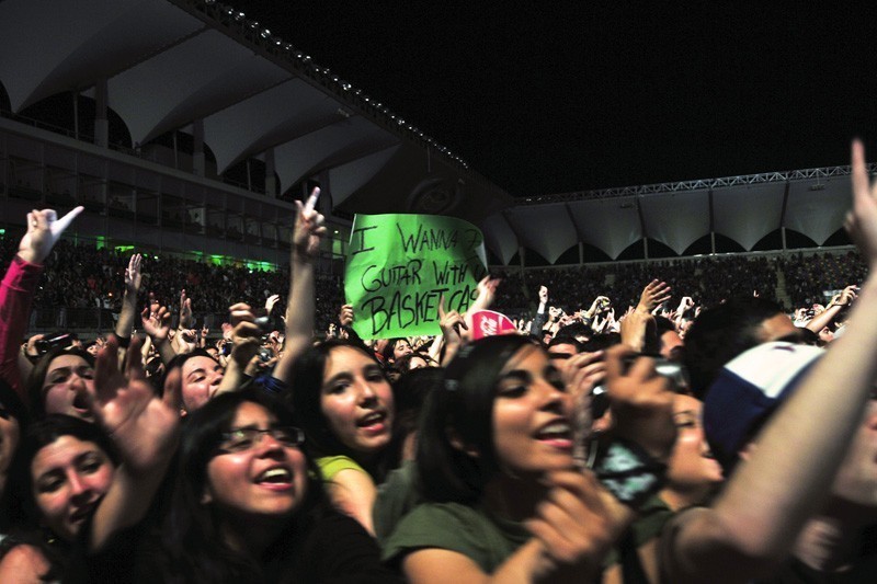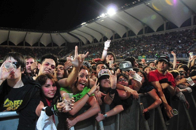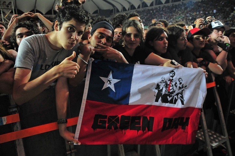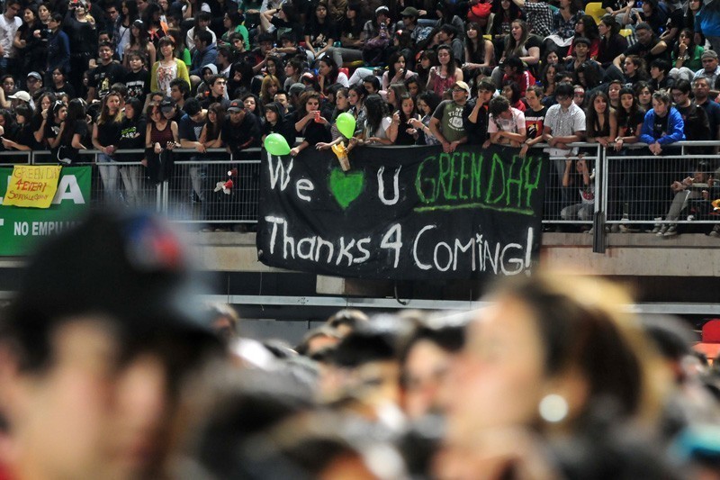 El trío californiano se presentó la noche del domingo 24 de octubre en el Estadio Bicentenario de La Florida, ante más de 20 mil personas de todas las edades. Green Day conquistó al público chileno con un extenso repertorio que se extendió a lo largo de 3 horas de concierto.