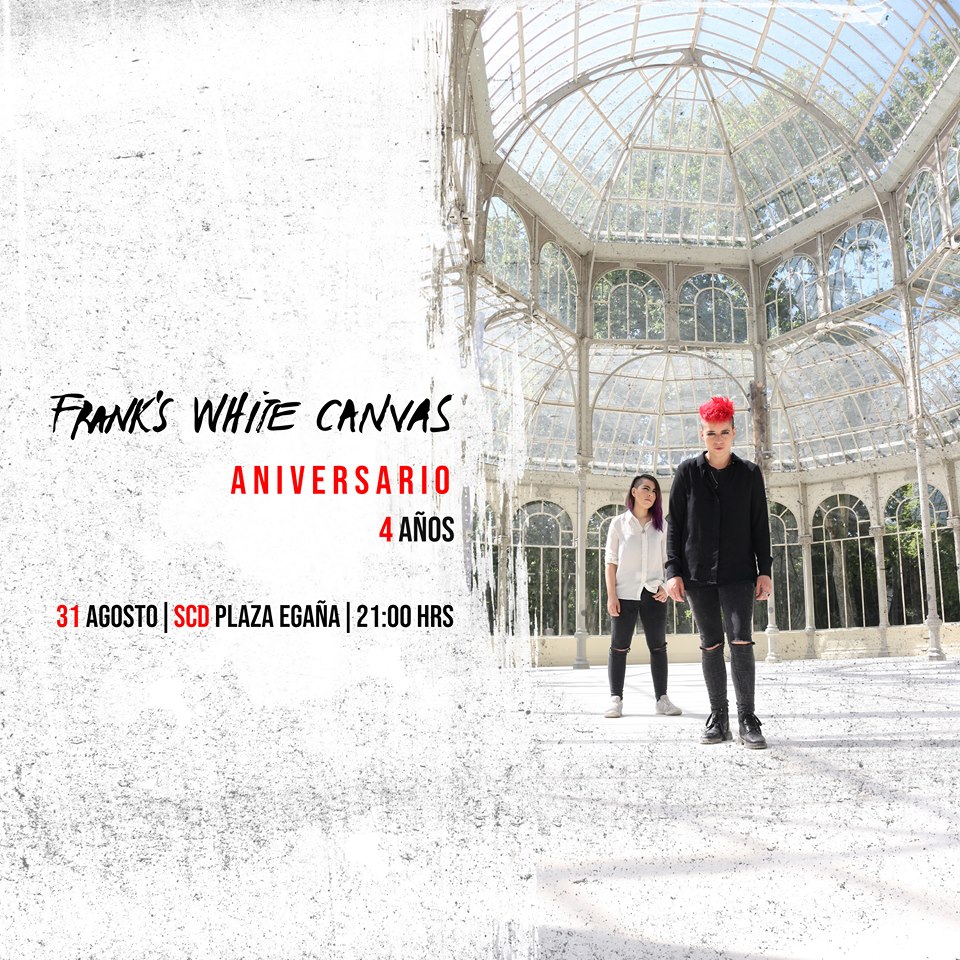 Como forma de coronar este gran logro en su carrera y de paso celebrar sus 4 años desde su formación, Frank’s White Canvas tocará este próximo 31 de agosto en la Sala SCD Plaza Egaña, oportunidad en que se reencontrarán con sus fanáticos nacionales, en un show de larga duración que prometen será “muy especial”.