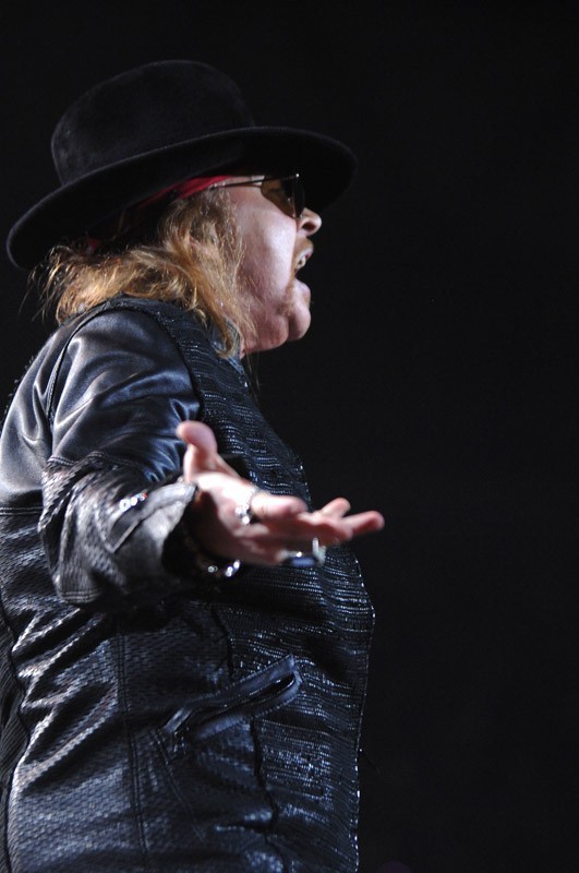 Hablar de Guns N’ Roses no es sólo hacer alusión a lo estrictamente musical; por años fue la banda que sostuvo el estandarte de “sexo, drogas y rock and roll”. Y algo de esto queda aún en su vocalista, quien se niega a dejar de lado su título de rockstar. La espera generada por Axl terminó por brindar un espectáculo aparte, llegando incluso a peleas entre la mesa de sonido y el público que se empeñaba en arrojar objetos al sector.