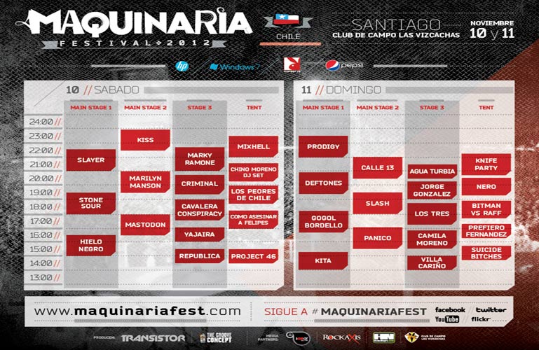 Revisa los horarios y escenarios del Maquinaria Festival Chile 2012