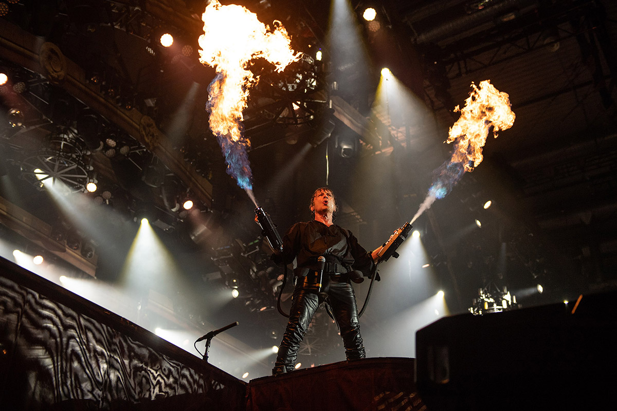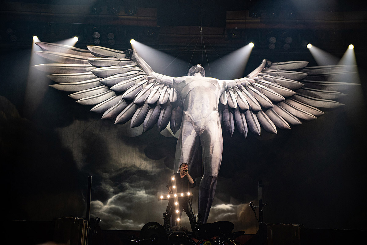 En cuanto a la puesta en escena, el grupo decidió ocupar todos los recursos. Por ello, dentro del show aparecieron un avión, un lanzallamas, una cruz iluminada y una impresionante imagen de Ícaro.