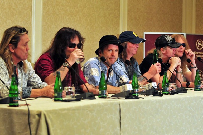 Nicko McBrain, Bruce Dickinson, Steve Harris, Dave Murray, Janick Gers y Adrian Smith venían llegando de Buenos Aires, en donde se presentaron la noche del viernes 8 de abril. «Los argentinos fueron muy ruidosos», advirtió McBrain, casi como un desafío al público chileno.