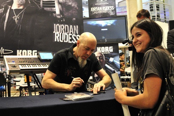 Con una excelente disposición y muy cercano a sus fans, Ruddes estuvo cerca de hora y media compartiendo y firmando autógrafos. Desde guitarras, fotografías, discos, carátulas de dvd, hasta banderas y ,ciertamente, teclados (fueron cerca de tres los fanáticos que llegaron con dicho instrumento), circularon frente al calvo tecladista de Dream Theater. Todo ello al son de las composiciones de la última placa de la banda: Black Clouds & Silver Linings.