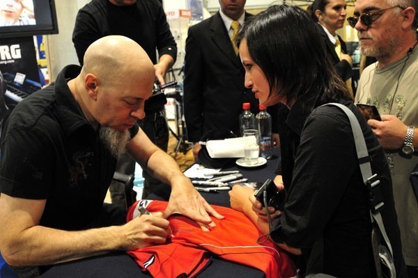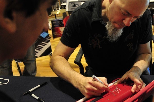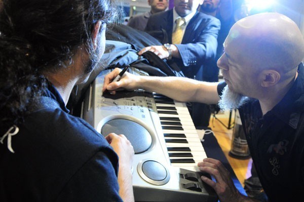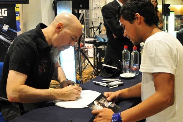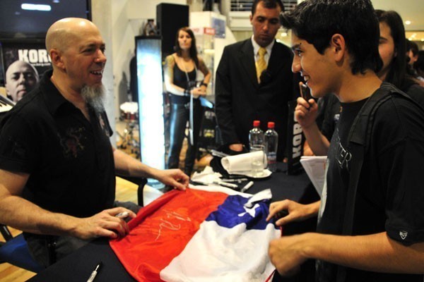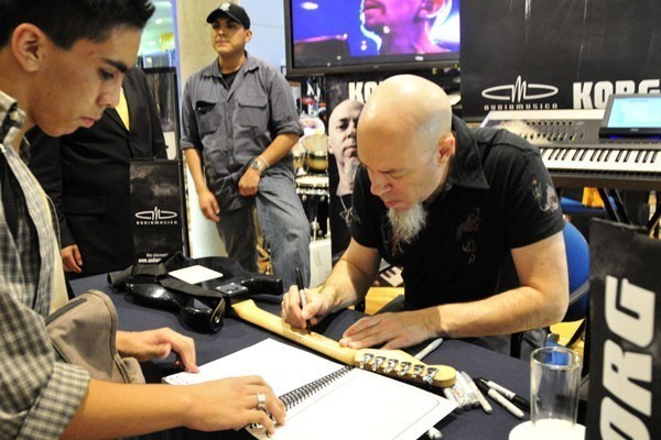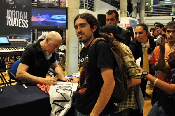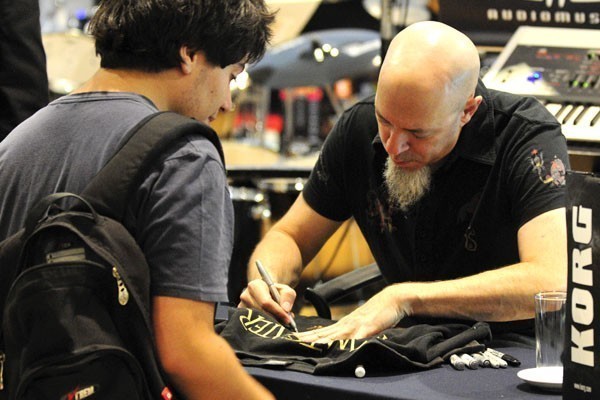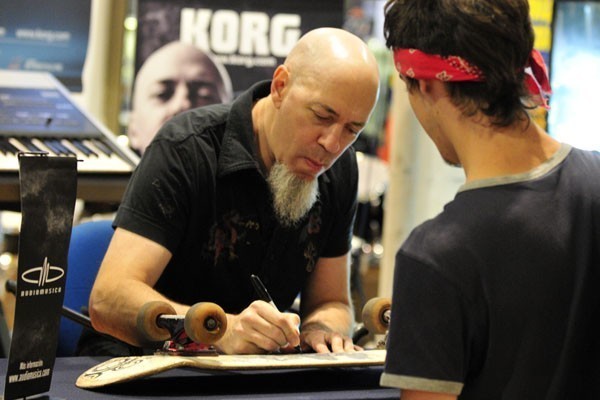 El tecladista de los heavy/progresivos Dream Theater, quienes se presentarán en nuestro país el próximo viernes en el Movistar Arena, compartió con sus fanáticos chilenos una sesión de autógrafos la tarde del miércoles en el local de Audiomúsica, ubicado en Av. Chile España 393, en Ñuñoa.