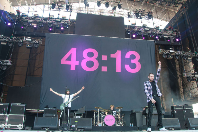 A las 18:15 horas, cuando ya el sol se escondía, los alrededores del escenario estaban abarrotados para recibir a la agrupación compuesta por Tom Meighan (voz), Sergio Pizzorno (guitarra y principal compositor), Chris Edwards (bajo) e Ian Matthews (batería), acompañados en la gira por Tim Carter (guitarra) y Ben Kealy (teclados). Sin esperar, descargaron «bumblebeee», canción que también abre 48:13 (2014), su más reciente álbum, y cuyo nombre fue instalado como fondo durante todo el concierto.