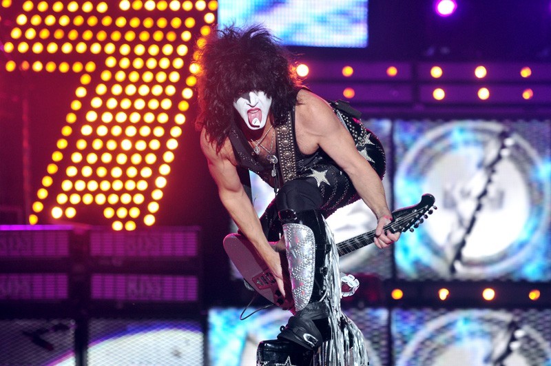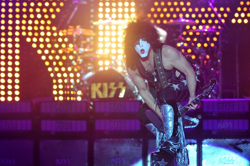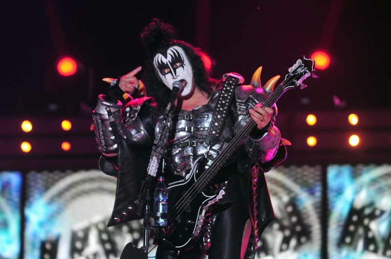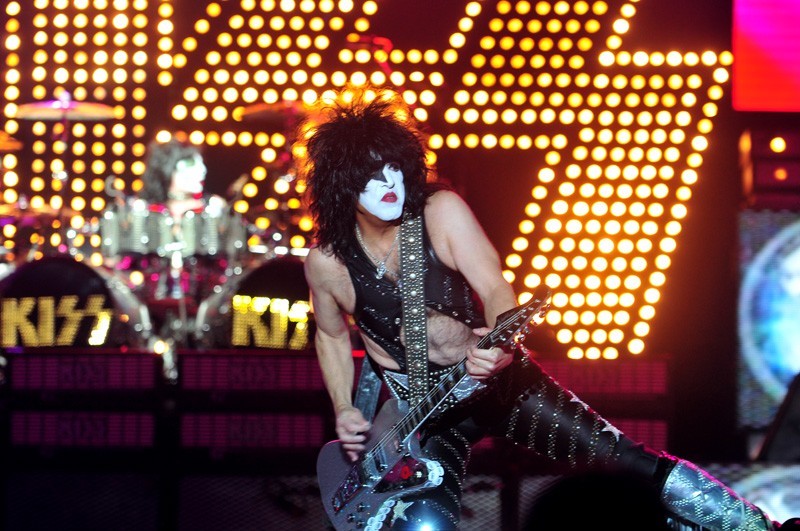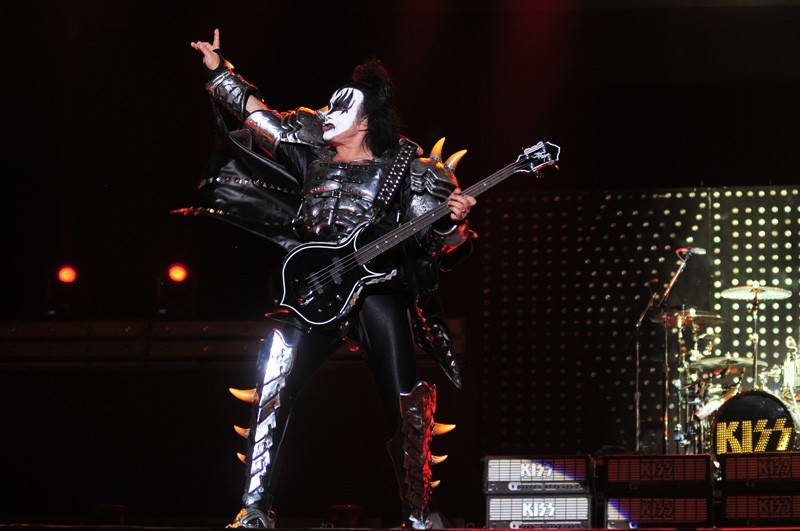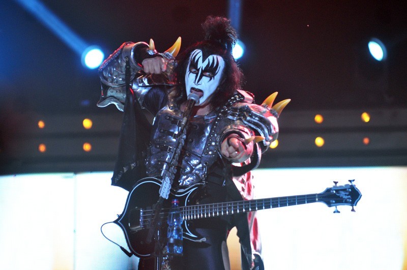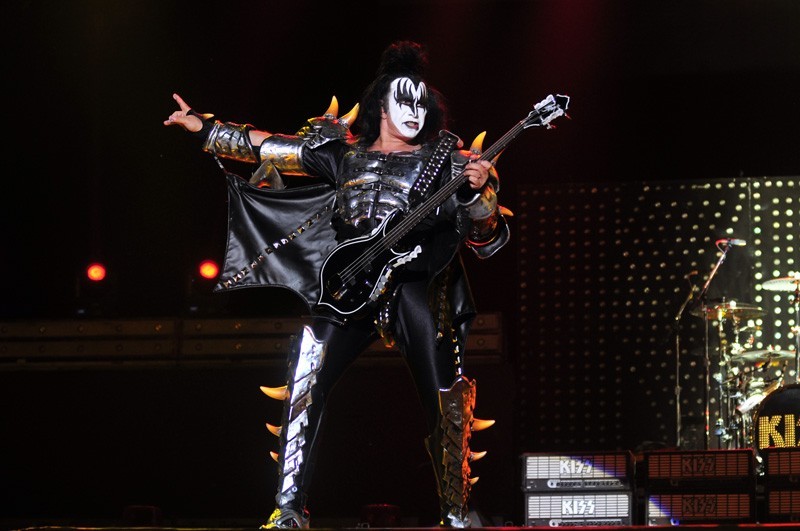 Gene Simmons, con su clásico bajo en forma de hacha, comienza a arrancar notas de su instrumento, mientras las luces bajan su intensidad y se posicionan sobre su figura. De la boca del músico, comienza a brotar un líquido simulando sangre, para el regocijo de los presentes. Acto seguido, una cuerda lo eleva, y él canta desde las alturas, interpretando junto a sus compañeros “God of Thunder”, previo a los “olé olé” del público.