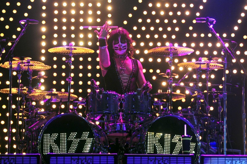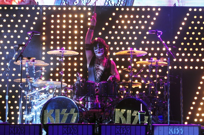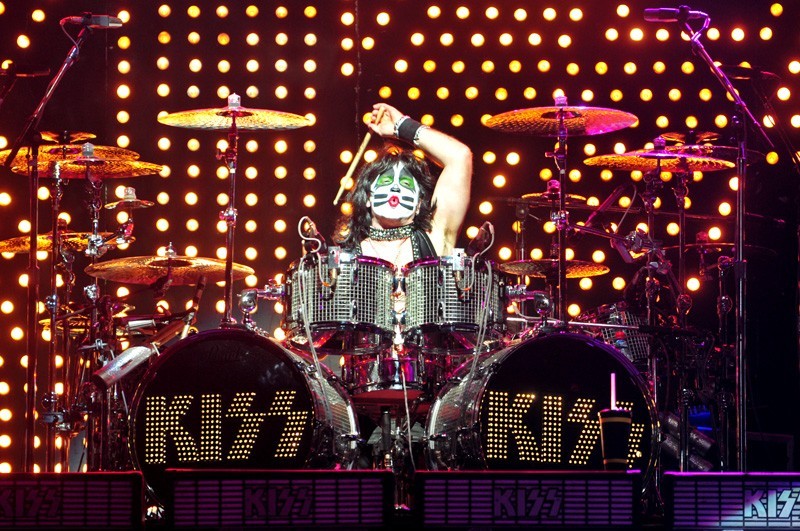 Tommy Thayer (guitarra) se despacha un solo, acompañado de pirotecnia que emana desde su instrumento. ¿Quiénes mejor que Kiss saben cómo ofrecer un espectáculo redondo? Sumemos a esto, que a continuación la batería se eleva hasta el tope del escenario, mientras todos observan a Eric Singer, ¡quien dispara una bazooka!