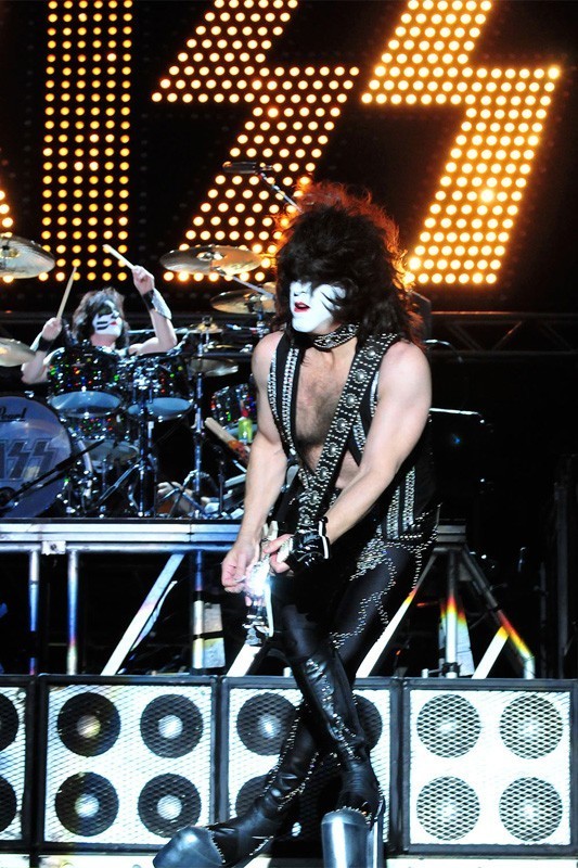 Los 30 minutos de espera que preceden a Kiss se hacen interminables. Cerca de las 21:25 horas, se despliega un lienzo que cubre por completo el escenario, con el logo de Kiss (¡obviamente!), desatando la locura en el Estadio Bicentenario de La Florida. Pasan cinco minutos y se escucha: “Santiago, you wanted the best, you got the best…” la clásica frase de la banda, que nos lleva al inicio del show con “Deuce”, y la gente saltando y coreando un verdadero clásico, seguida sin pausa por “Strutter”. Ya con los dos primeros temas y las columnas de fuego a los costados del escenario sincronizadas a la música, el show era increíble. Un sonido potente y nítido, y los cuatro integrantes a sus anchas.