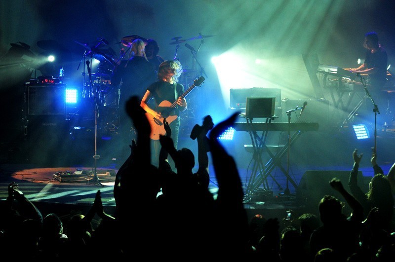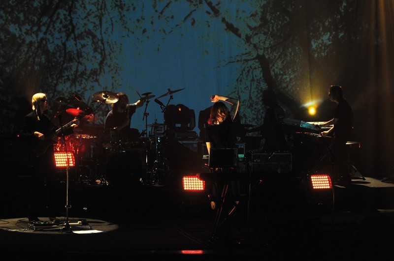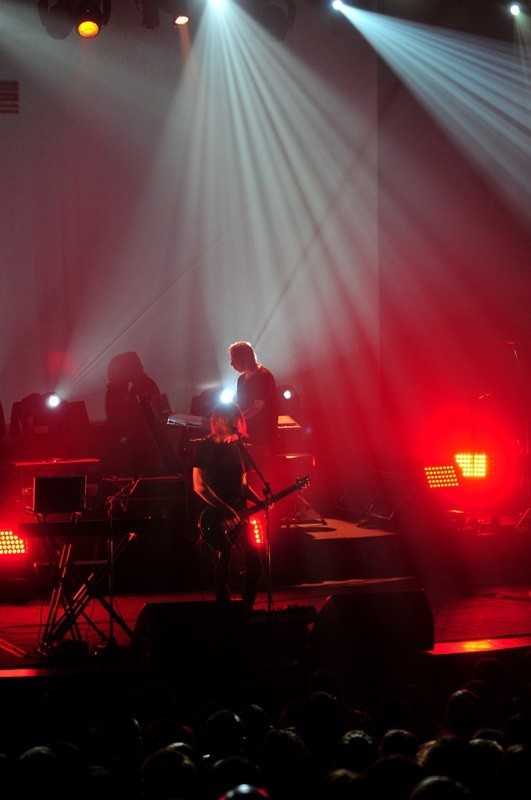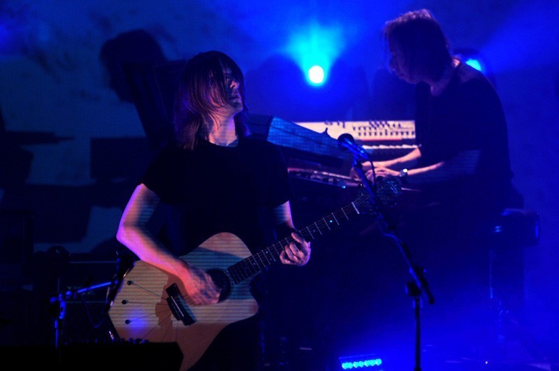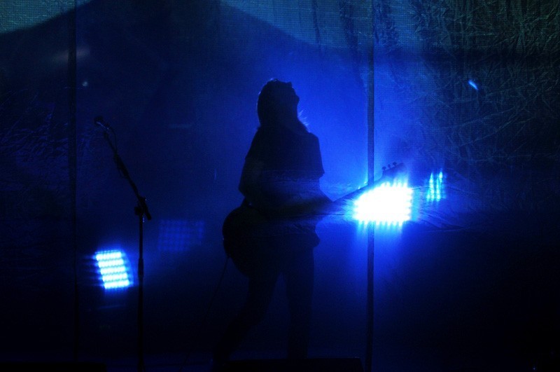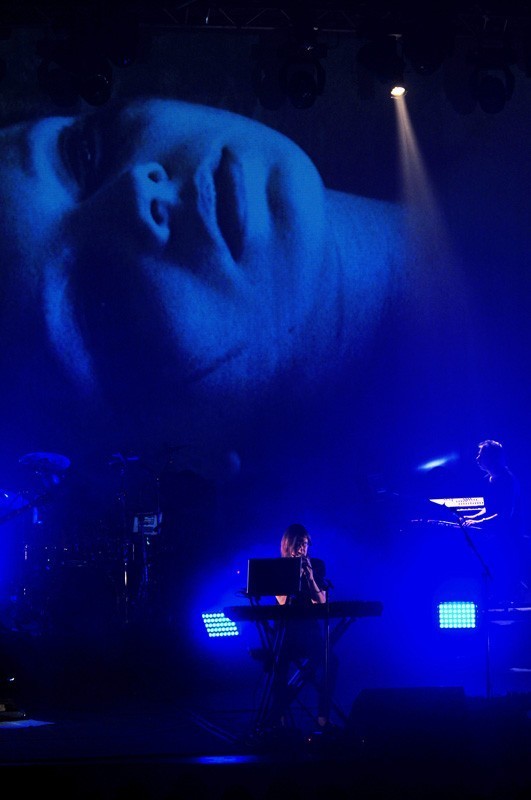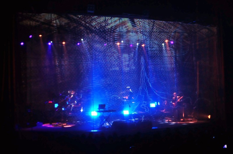 En la primera parte del show, un velo transparente separaba a la banda del público y sobre ella se proyectaban texturas e imágenes. Ese velo se vino abajo durante «Sectarian», generando uno de los momentos de mayor emoción. La cercanía entre artista y audiencia que permite el Teatro Oriente por sus dimensiones y distribución potenció un agradable ambiente de intimidad.