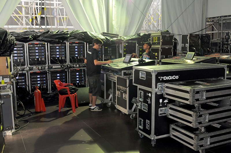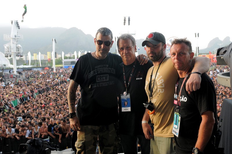 Desde el primer Rock in Rio en 1985, nuestro jefe se ha asegurado de que contemos con los mejores equipos disponibles. Obviamente hay otros tipos de equipos de sonido, pero el que usamos nosotros -VTX de JBL- hoy está entre los mejores.