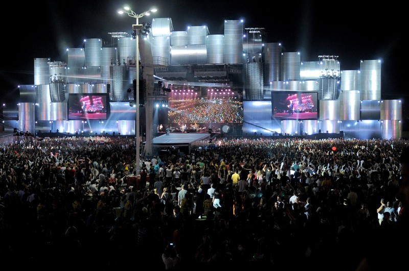 Sin embargo, una vez que el evento comienza, la actividad en el escenario principal nunca se detiene. «Trabajamos las 24 horas. Cuando se acaban los shows de un día, comenzamos a trabajar en seguida en el siguiente. El sábado Bruce Springsteen tocó hasta muy tarde, terminó casi a las 3 de la mañana, y dos horas después estaba llegando todo lo de Iron Maiden», apuntó Hughes, con quien tuvimos la oportunidad de conversar durante el último día del Rock in Río 2013.