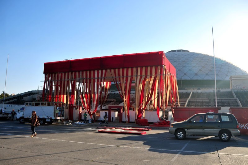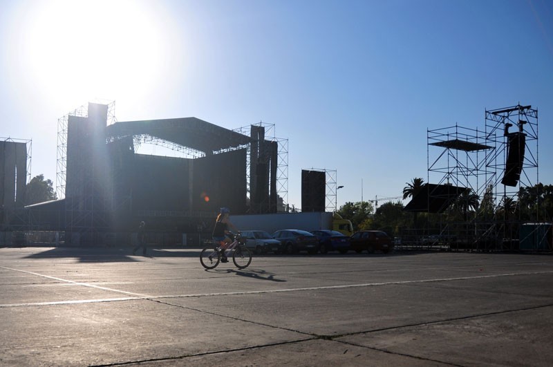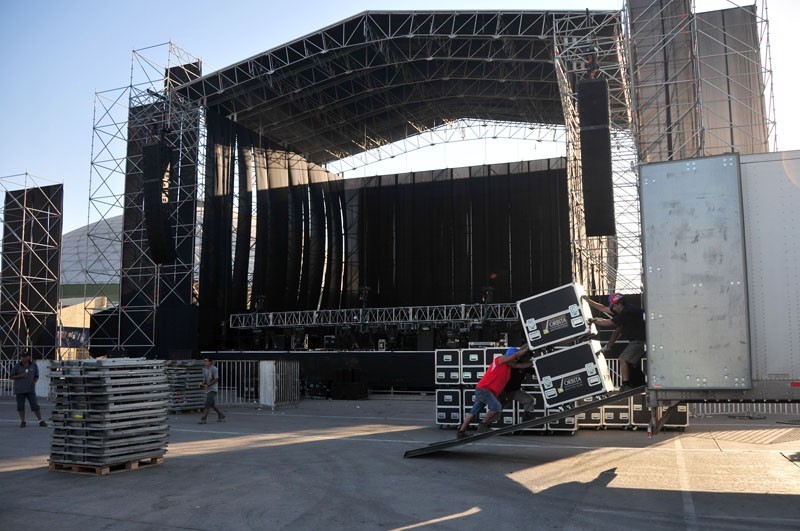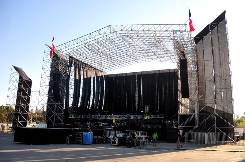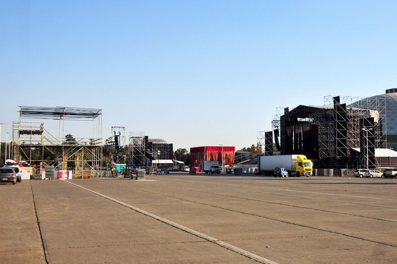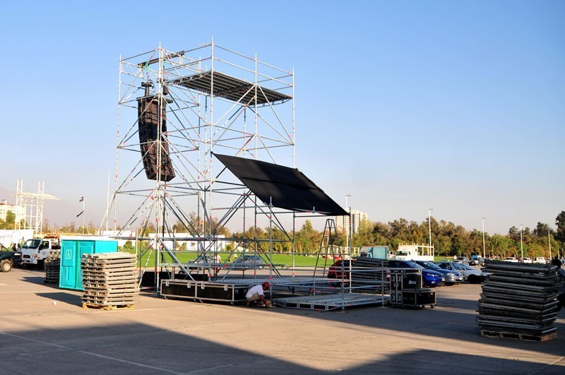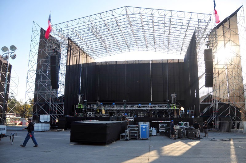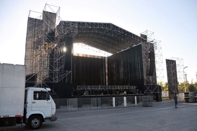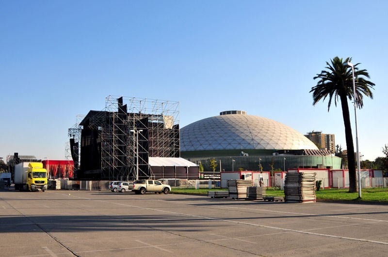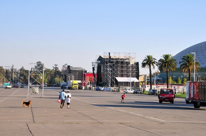 A través de la elipse se pueden apreciar los camiones y camionetas que trasladan equipos de iluminación y sonidos de última generación, los que son instalados por los cerca de 50 técnicos que trabajan en cada uno de los escenarios principales de Lollapalooza Chile, por donde pasarán artistas y bandas como Band of Horses, Gogol Bordello, Cage the Elephant, MGMT, TV on the Radio, Joan Jett, Björk, Arctic Monkeys y Foo Fighters.