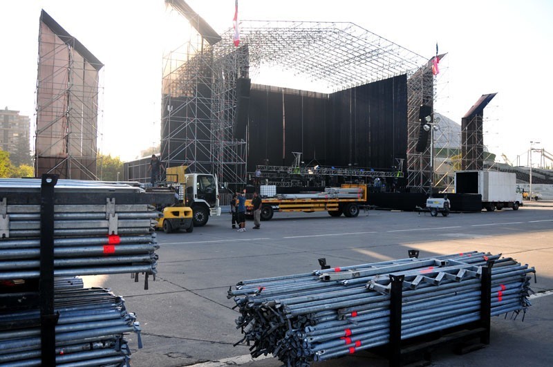 Recorrimos el recinto santiaguino para ver cómo avanzan los trabajos de montaje de las cientos de toneladas que se desplegan para recibir a cerca de 100 mil personas los próximos 31 de marzo y 1 de abril.