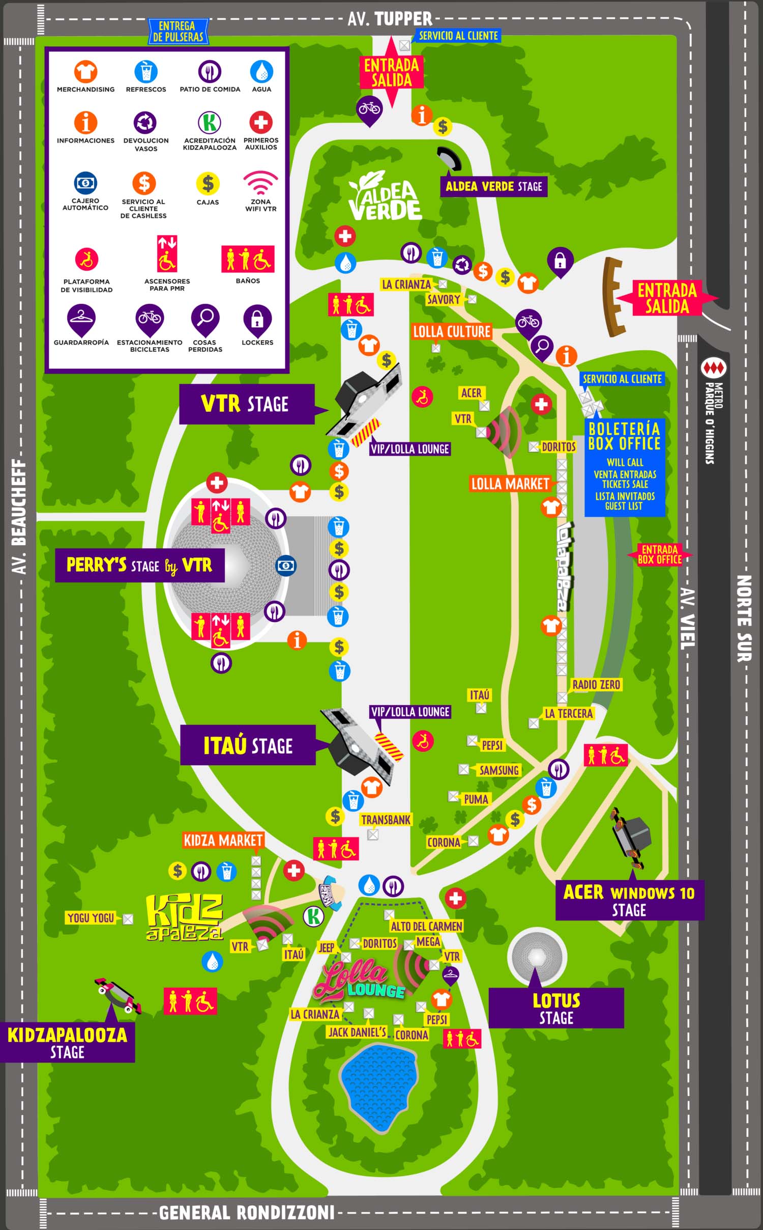 – Intérpretes de Lengua de Señas: En los escenarios principales y Kidzapalooza habrá staff interpretando los shows de ciertas bandas del cartel.
