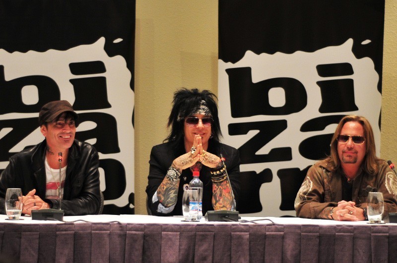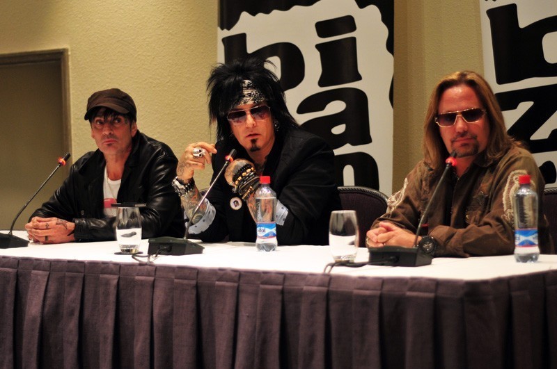 Un día antes de su primer concierto en Chile, Tommy Lee (batería), Nikki Sixx (bajo) y Vince Neil (voz) sostuvieron un encuentro con la prensa para hablar sobre su primera visita al país y sus próximos planes.