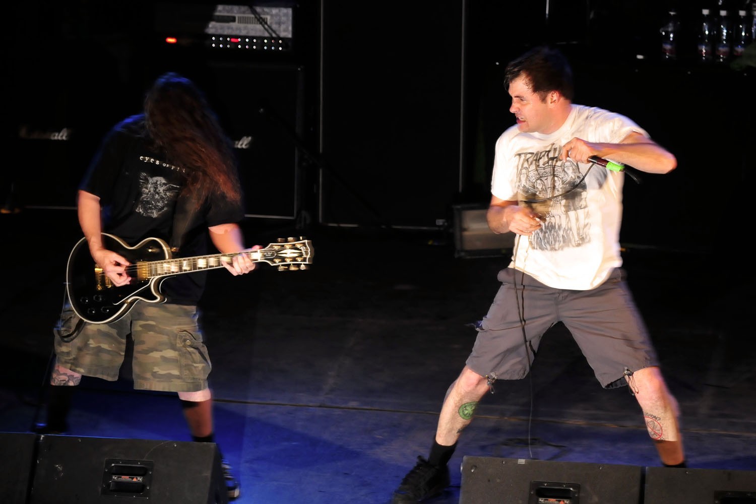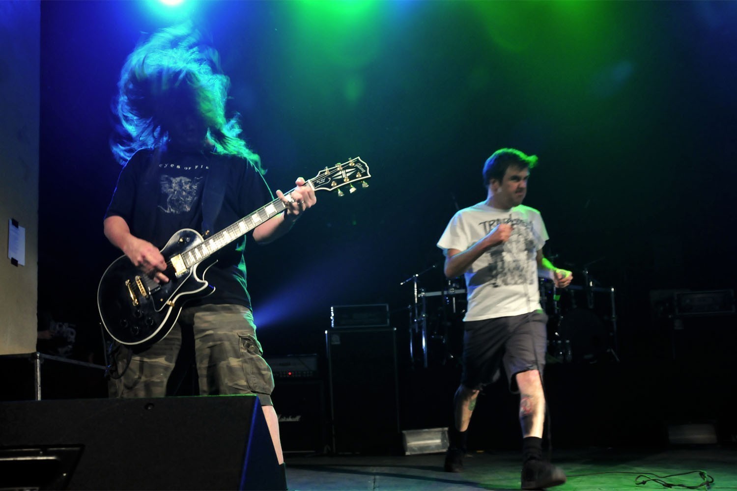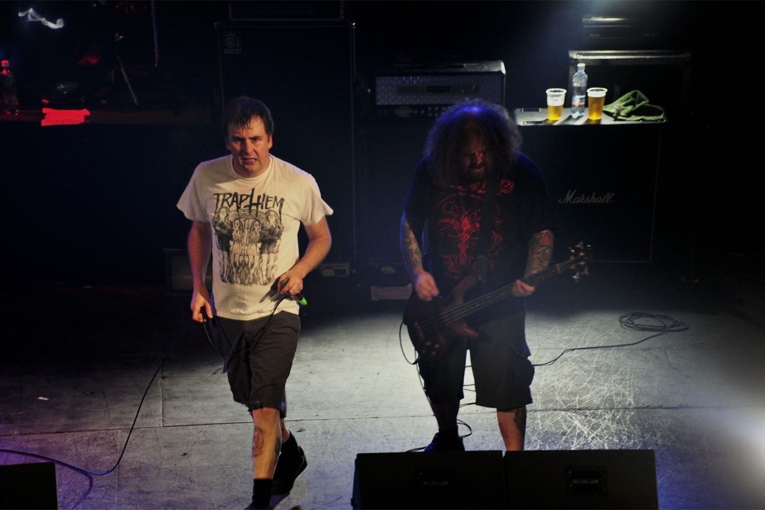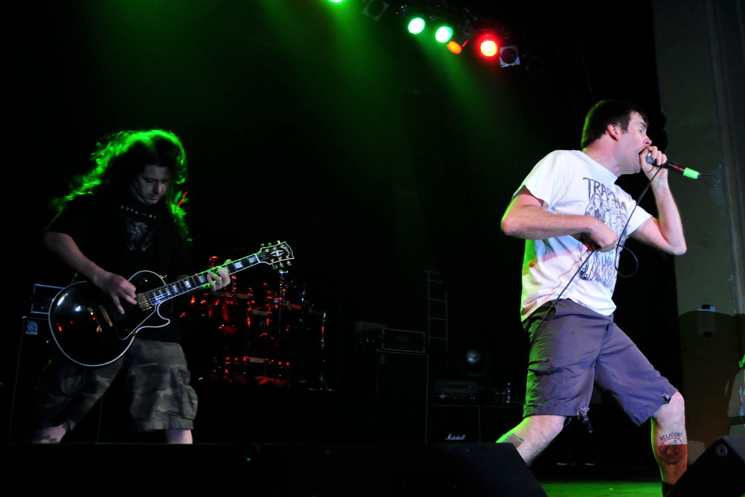 Tras 20 minutos de espera, Napalm Death aparece muy sigilosamente, tomando por sorpresa a todos y Mark «Barney» Greenway (voz) saluda al público, que de inmediato responde con una gran ovación, y sin tregua, arrancan con “Strong-Arm”, tema que abre su más reciente producción Time waits for no slave (2009), para de inmediato desatar euforia colectiva.