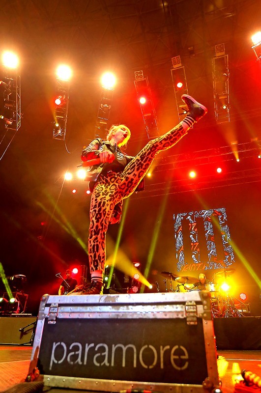 Con Paramore (2013), álbum que promocionan en esta gira, su espectro sónico se amplió aún más. Williams cedió terreno a Jeremy Davis (bajo) y Taylor York (guitarra) en las composiciones, materializando así el nuevo ciclo. «Interlude: Moving On», canción con la que abrieron la jornada lo sentencia: «We got our own style/ we got a way of livin’ life/ if they can’t get down/ well we don’t need them around», apuntando los dardos directamente a sus ex compañeros. Pasaron inmediatamente a la euforia con “Misery Business”, tema que los llevó a lo más alto de los ranking en la época de Riot! (2007). Mientras los afectados a causa de la histeria seguían en alza, «For a pessimist, I’m a pretty optimistic» cerraba la primera tanda. Los gritos no se dejaron esperar más y llegaron a su climax cuando una carismática Hayley saludó a todos con un particular español.
