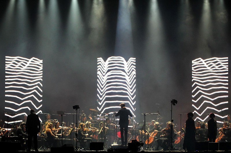 “Sin guitarras ni batería” rezaba el eslogan de la gira, en la que se hace acompañar por “The New Blood Orchestra”, que en Chile sumó a músicos locales. Y así fue, los temas cobraron nueva vida con arreglos que el público, en su mayoría adulto y adulto joven, disfrutó al 100% el miércoles 16 de noviembre en un Movistar Arena especialmente preparado para la ocasión, con asientos en todo el sector cancha.