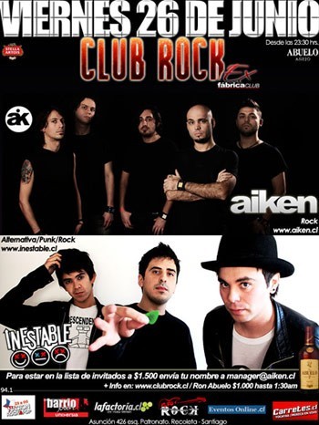 En su cuarta visita a Chile, Placebo tendrá a dos bandas locales como invitadas: Aiken, quienes acaban de estrenar el video para el single single «Allá Voy», y The Plugin, el proyecto de synthpop que tiene entre sus integrantes al ex La Ley, Rodrigo “Coti” Aboitiz.