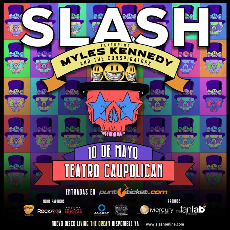El mítico guitarrista Slash regresará a Chile para presentar su nuevo trabajo solista. Una apuesta musical que lo une, una vez más, a Myles Kennedy & The Conspirators. Así, el clásico integrante de Guns n’ Roses agenda la vuelta a nuestro país a poco más de un año de su última visita junto a su banda madre.