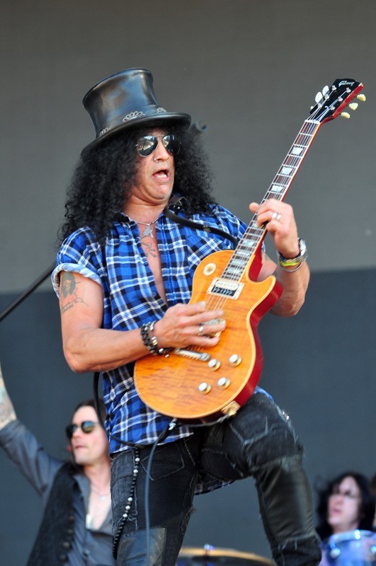 Pasadas las 18 horas y cuando el sol abrasador golpeaba el escenario Maquinaria, Saul Hudson – más conocido como Slash – ocupando una camisa y su infaltable sombrero, dio inicio al rock n’ roll con “Halo”, tema de su más reciente disco Apocalyptic Love (2012) para luego golpear de inmediato con “Nightrain” y el característico cencerro, lo que provocó la alegría de los fans más incondicionales de Guns N’ Roses, quienes respondieron con palmas al son de la música.