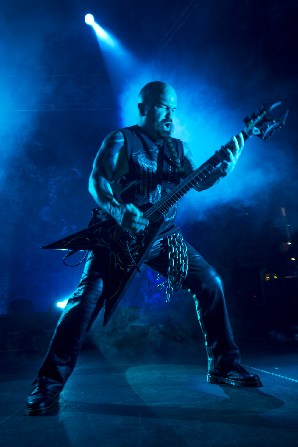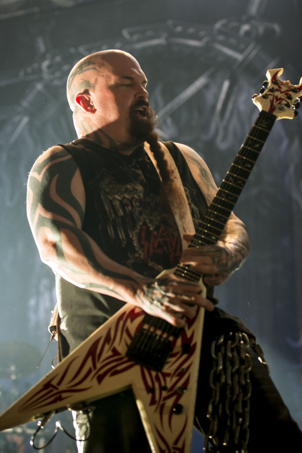 “Fight Till Death”, “Dead Skin Mask”, “Die by the Sword” y “Chemical Warfare” se sucedieron sin pausas, exigiendo a full a un Paul Bosptaph que cumplió un impecable papel tras la batería, aunque la figura del gran Dave Lombardo siempre se extrañará en una banda como Slayer. Por su parte, Gary Holt (Exodus) en las seis cuerdas, ya se siente a sus anchas, pero se nota un respeto a la figura de Jeff Hanneman en cada uno de los solos que ejecuta, los que tenían un sello inconfundible.
