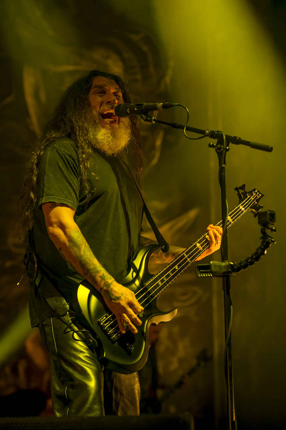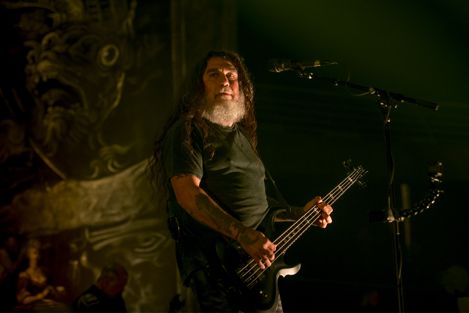 “Postmortem” y “Hate Worlwide” terminaron el primer round, para luego recuperar fuerzas con una necesaria pausa. Tom Araya, como el buen pastor liderando esta verdadera misa del metal, se dirigió al público, que escuchó atento, para saludar y lanzar un “¡Viva Chile mierda”, dando el puntapié perfecto con un grito aguerrido y presentar así “War Ensamble”. Locura total.