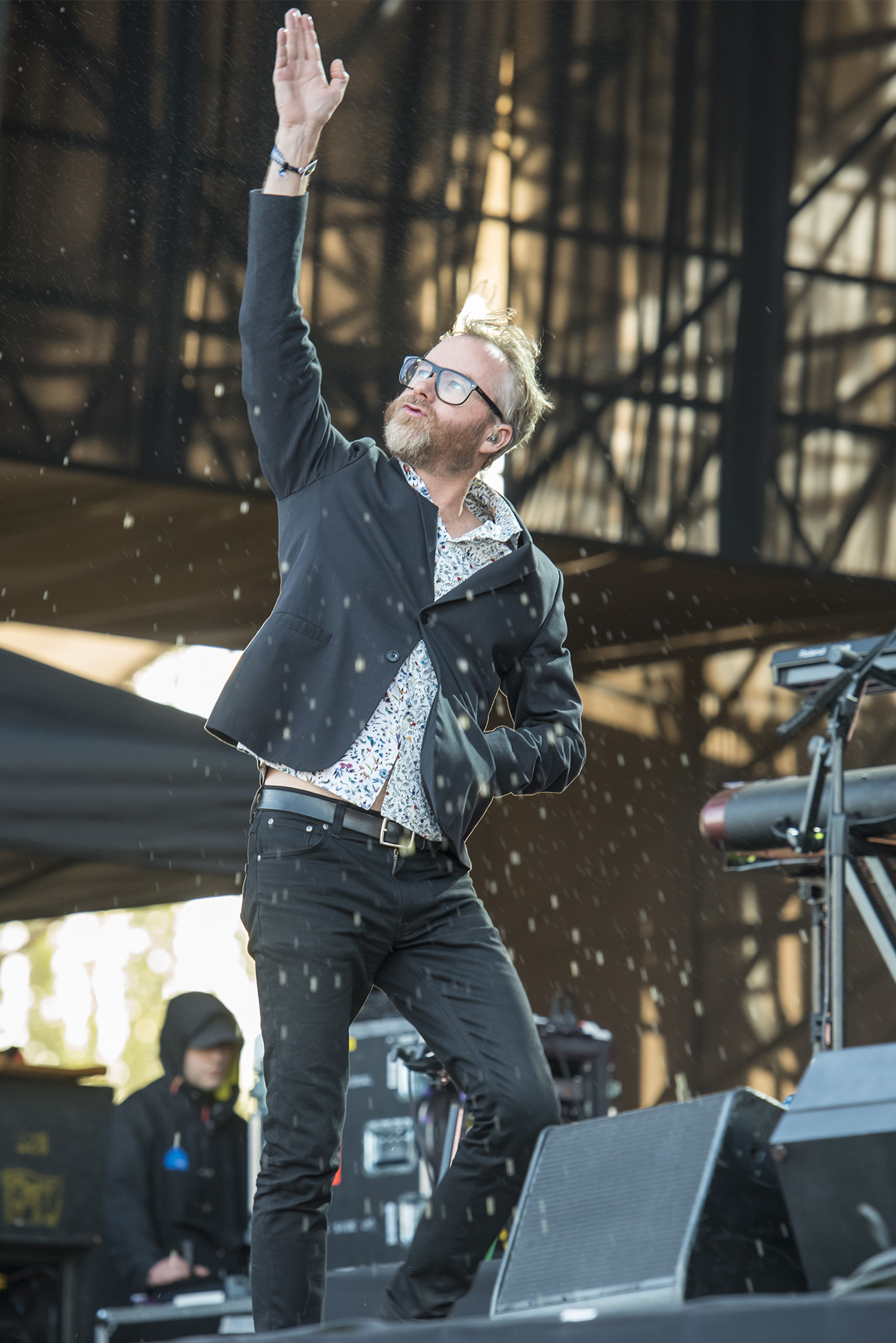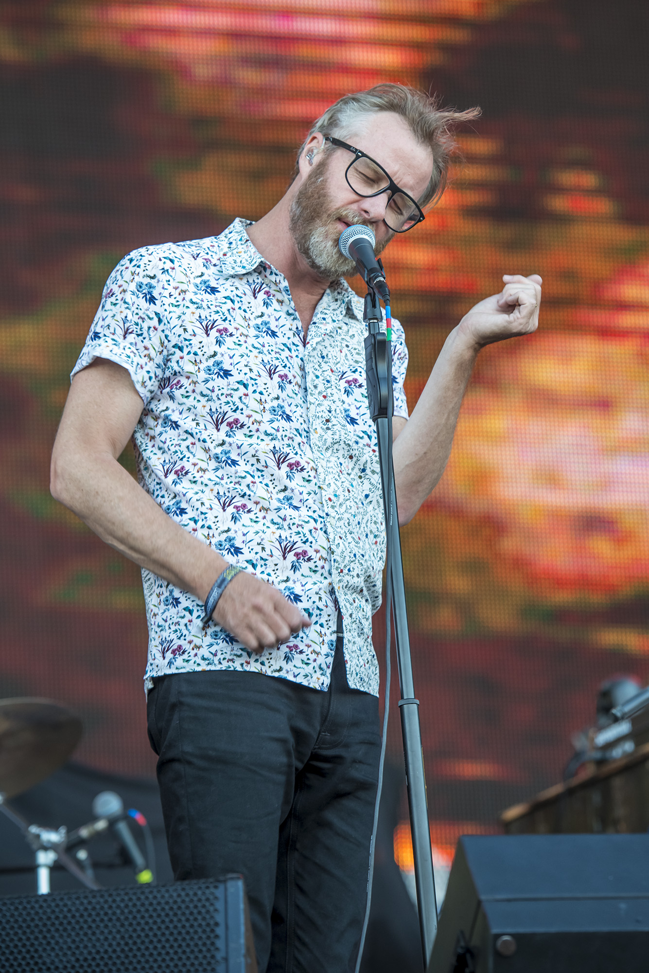 La apariencia comedida del vocalista Matt Berninger y su voz de barítono contrastan con las interpretaciones viscerales que se despacha en canciones como «The System Only Dreams in Total Darkness«, «Squalor Victoria» y «Mr. November«, donde sus gritos desgarrados acaban con su aparente calma e inyectan energía y un toque justo de histrionismo a la puesta en escena.