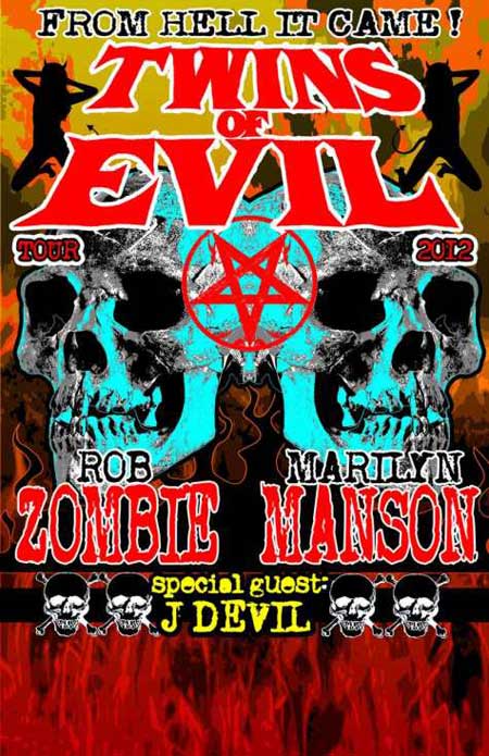 Con un show en el Desert Uprising Festival en Phoenix, Arizona, Marilyn Manson y Rob Zombie darán en septiembre inicio a Twins of Evil, tour con el que unirán fuerzas hasta el mes de diciembre con shows en Estados Unidos y Europa, fechas en las que Jonathan Davis (Korn), participará como músico invitado mostrando su faceta como Dj con el apodo de “J Devil”.
