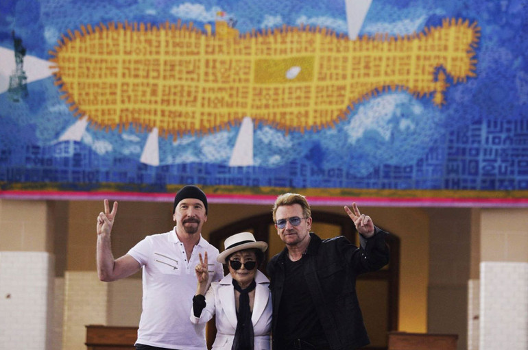 Yoko Ono y los miembros de la banda irlandesa U2, Bono y The Edge, develaron un gran tapiz creado en honor a John Lennon. El trabajo quedará instalado en Nueva York, ciudad donde el músico vivió desde 1971 hasta su asesinato en 1980.